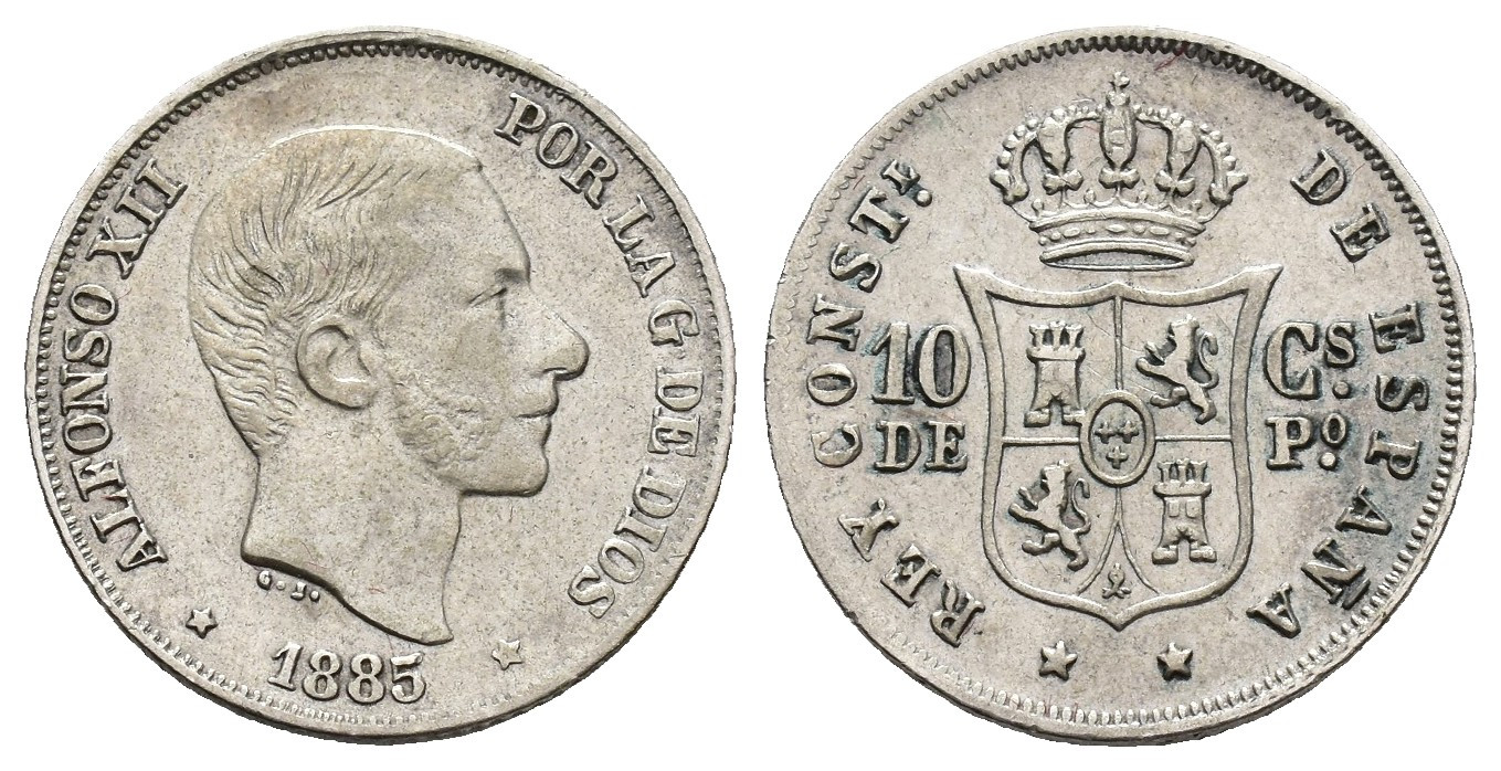 ALFONSO XII. 10 centavos. 1885. Manila. AR 2,6 g. 18,2 mm. VII-56; AC-102. MBC+/MBC.