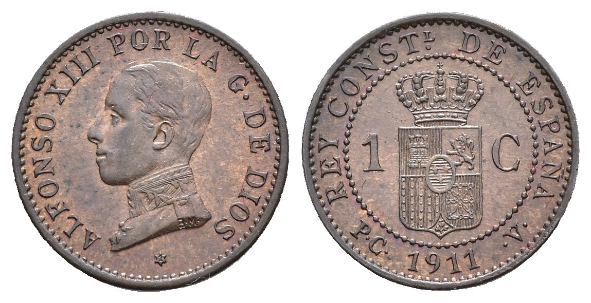 ALFONSO XIII. Céntimo. 1911. PCV. CU 1 g. 15,2 mm. VII-128; AC-3. R.B.O. EBC+.