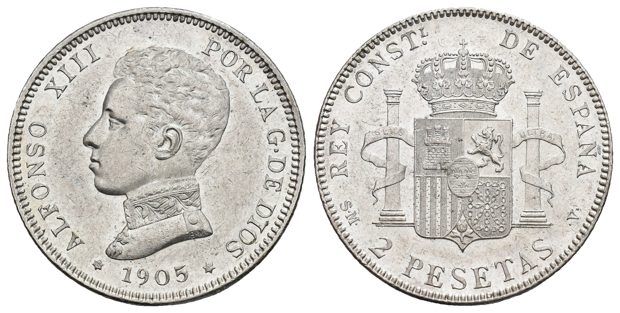 ALFONSO XIII. 2 pesetas. 1905*19-0. Madrid. SMV. AR 10,04 g. 27 mm. VII-175; AC-88. R.B.O. EBC.