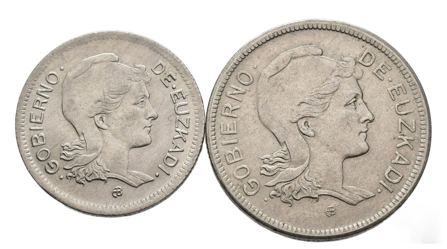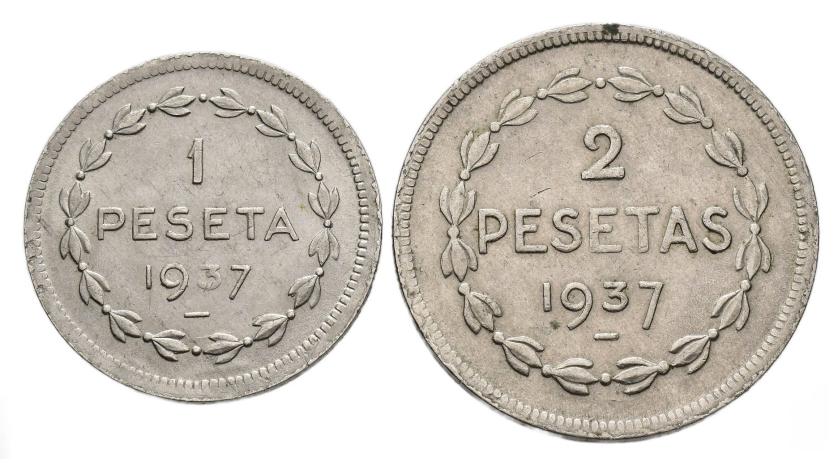 GUERRA CIVIL. Gobierno de Euzkadi. 1 y 2 pesetas. 1937. VII-237 y 239; AC-14 y 15. EBC-.