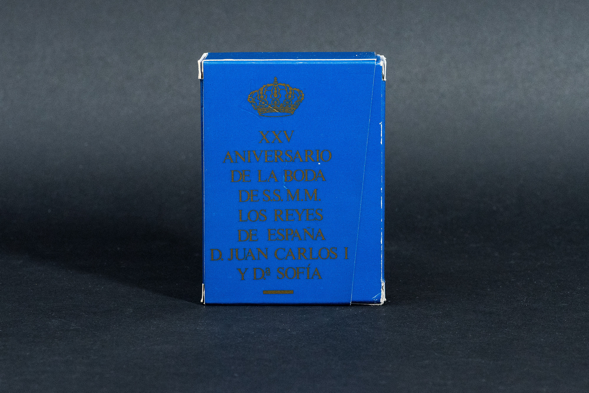 JUAN CARLOS I.  XXV Aniversario de boda de Juan Carlos y Sofía, 500 pts.: estuche con 5 monedas y 1 medalla conmemorativa de la Constitución de 1978, 2 de ellas en plata, con librito. Total 6 piezas. Pruebas de la FNMT. 1987.  Prueba.