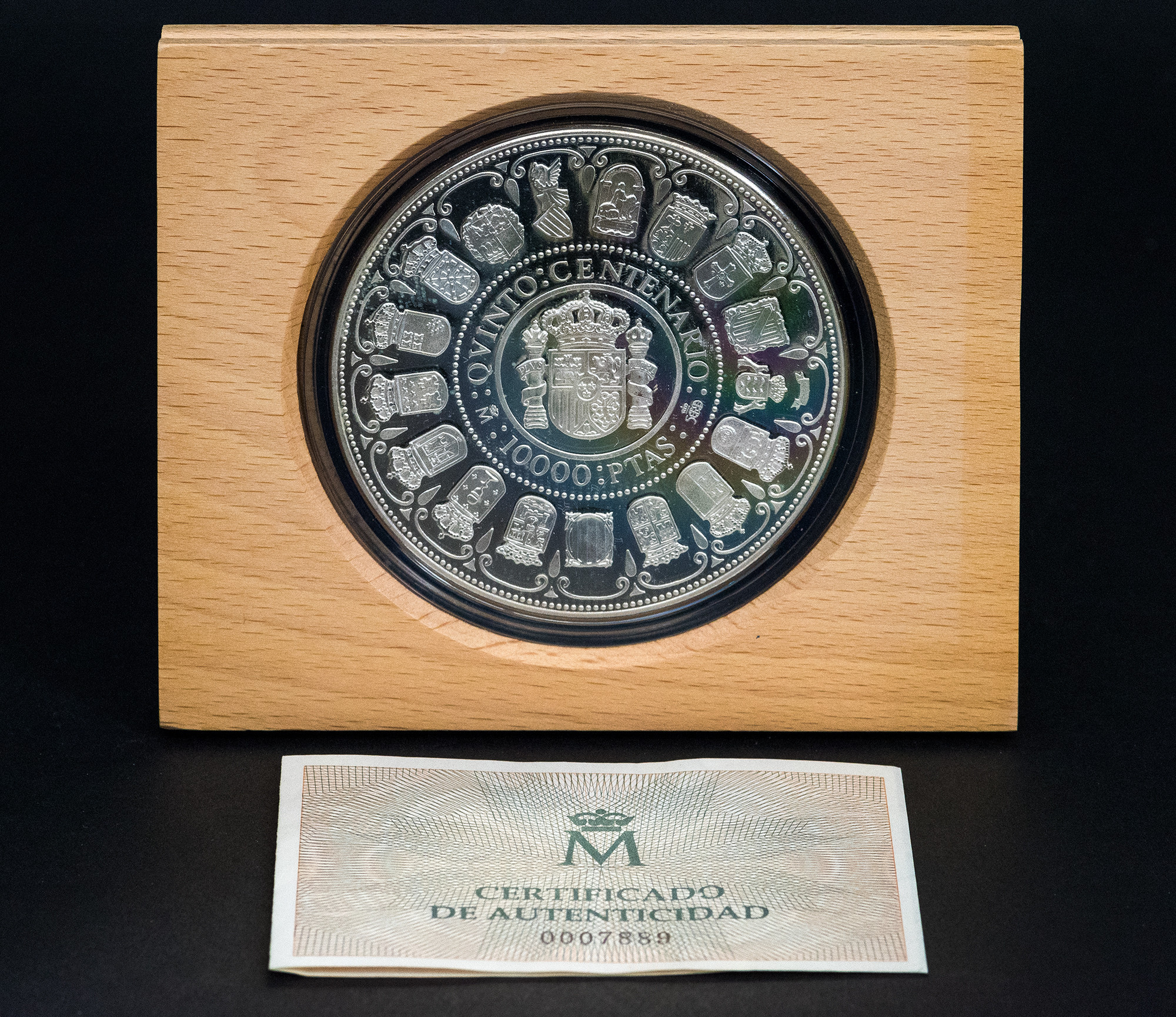 JUAN CARLOS I. Serie III. V Centenario. 1991. 10.000 pts. En su caja y con certificado. FDC.