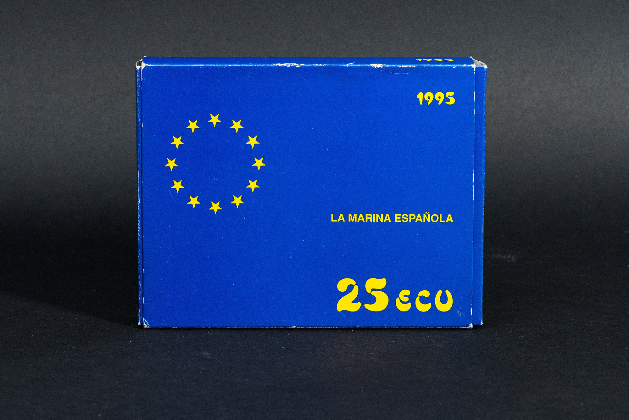 JUAN CARLOS I. 25 ecu. 1995. La Marina Española. FNMT. AR 168,75 g. En su estuche original y con certificado de autenticidad. FDC.