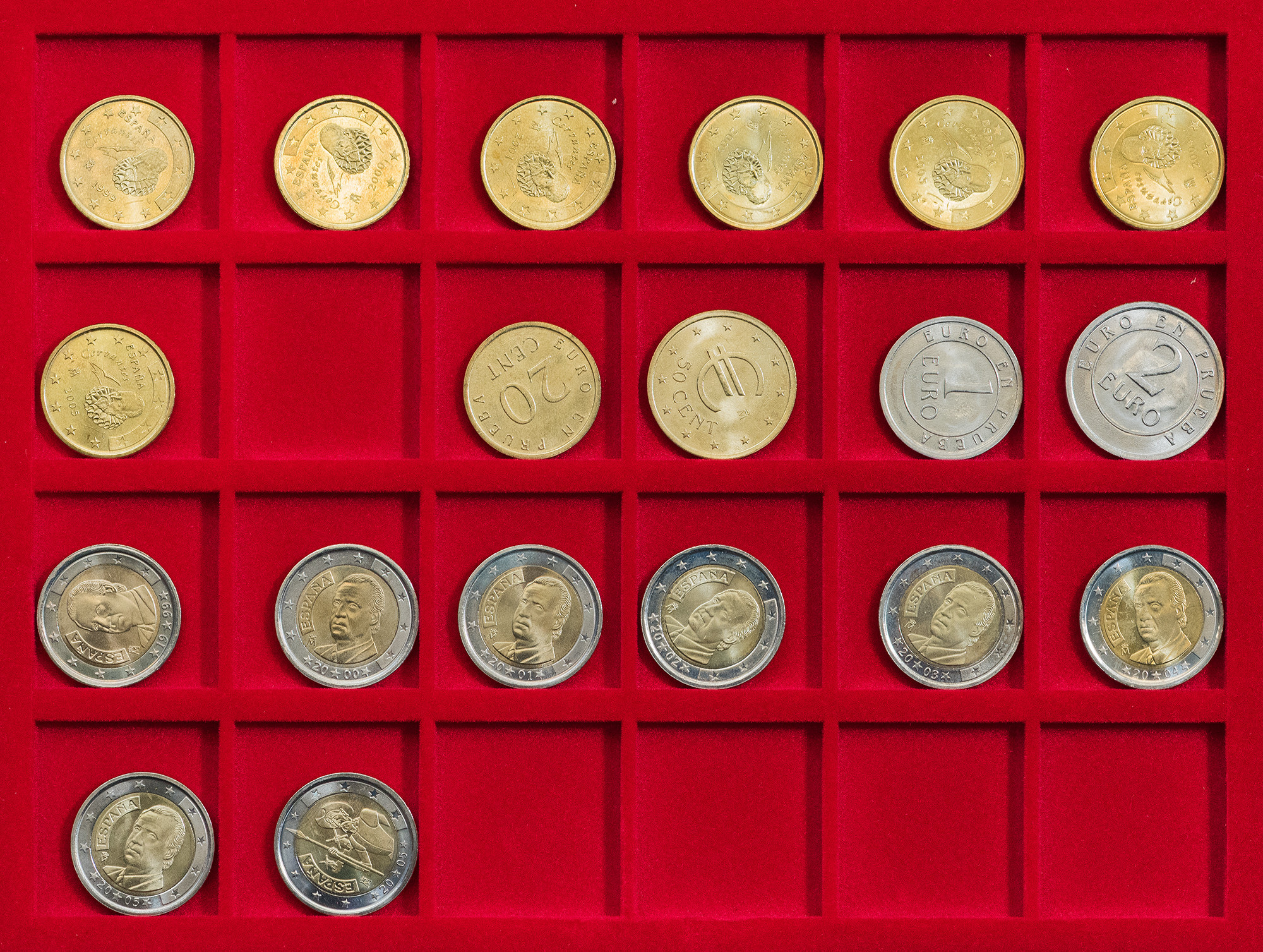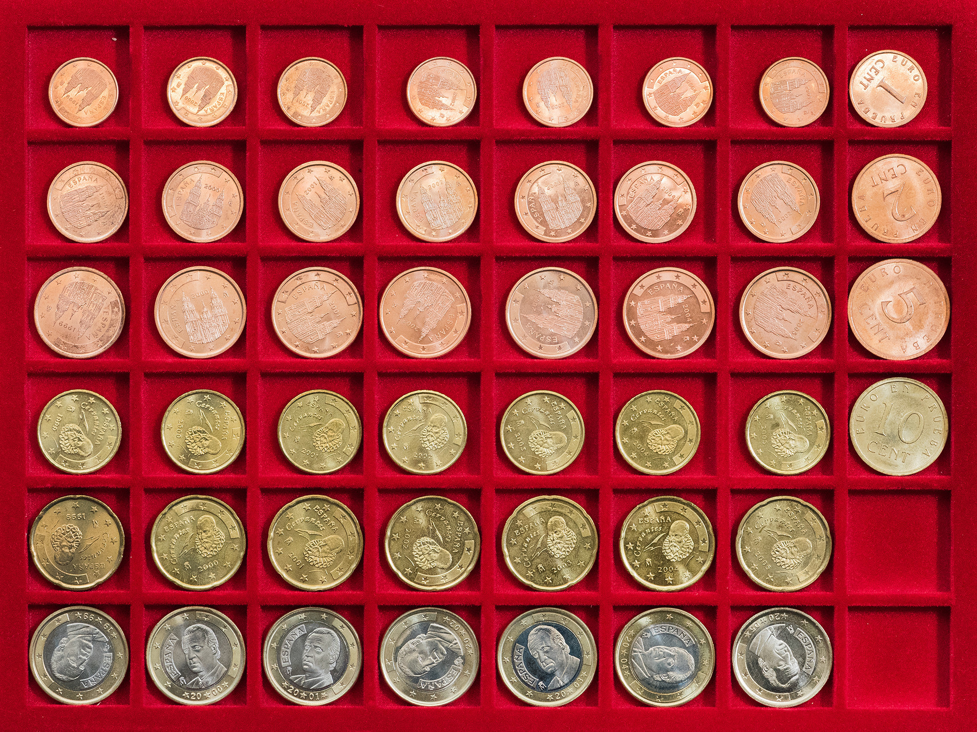 JUAN CARLOS I. Colección de 8 series del sistema del euro: 7 de España (1999-2005) y una de Churriana. SC.