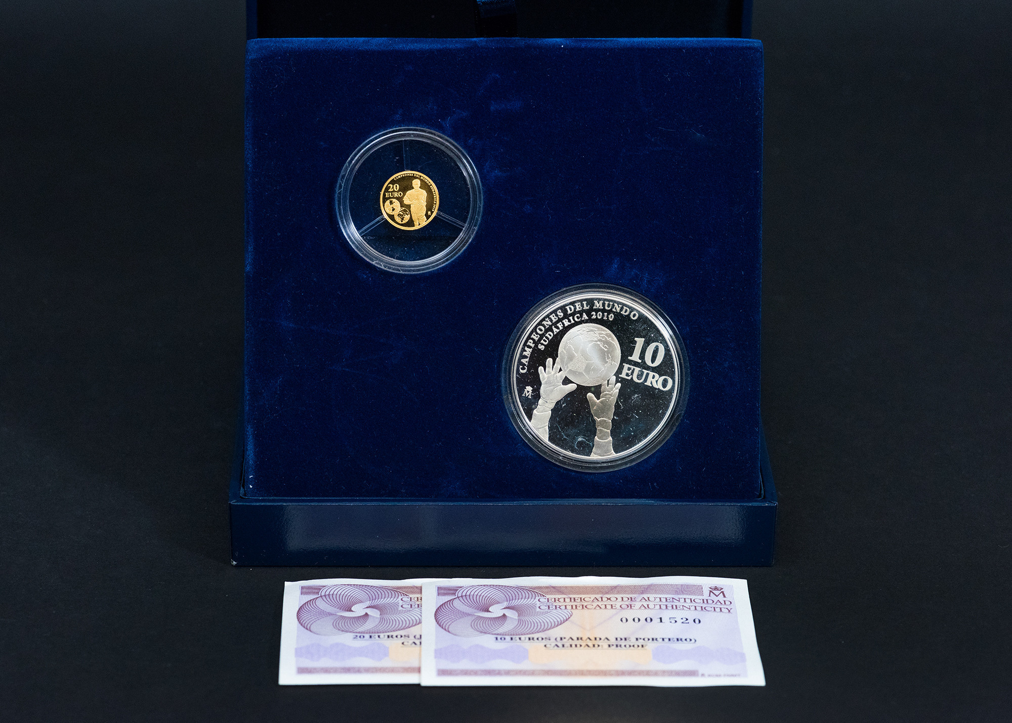 JUAN CARLOS I. Campeones del Mundo Sudáfrica 2010. 10 y 20 euros. En su estuche y con certificado. Prueba.
