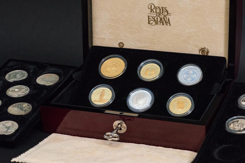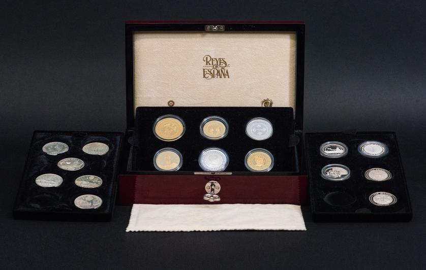 JUAN CARLOS I. Estuche con 11 medallas de plata y 6 monedas de 2000 pesetas. EBC a Prueba.