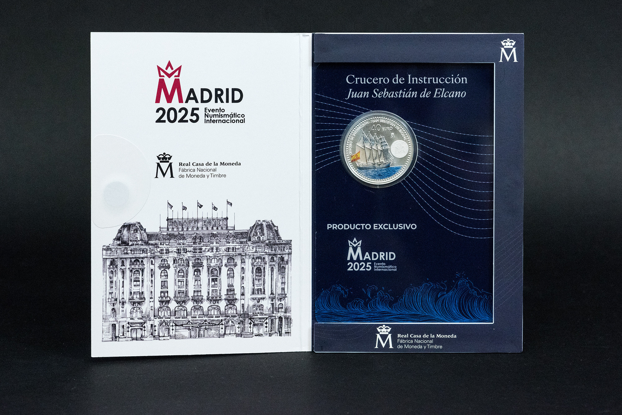 FELIPE VI. 40 euros conmemorativos. FNMT. 2025. Crucero de instrucción Juan Sebastián de Elcano. Cartera del Evento Numismático Internacional. Emisión de 750 piezas. SC.