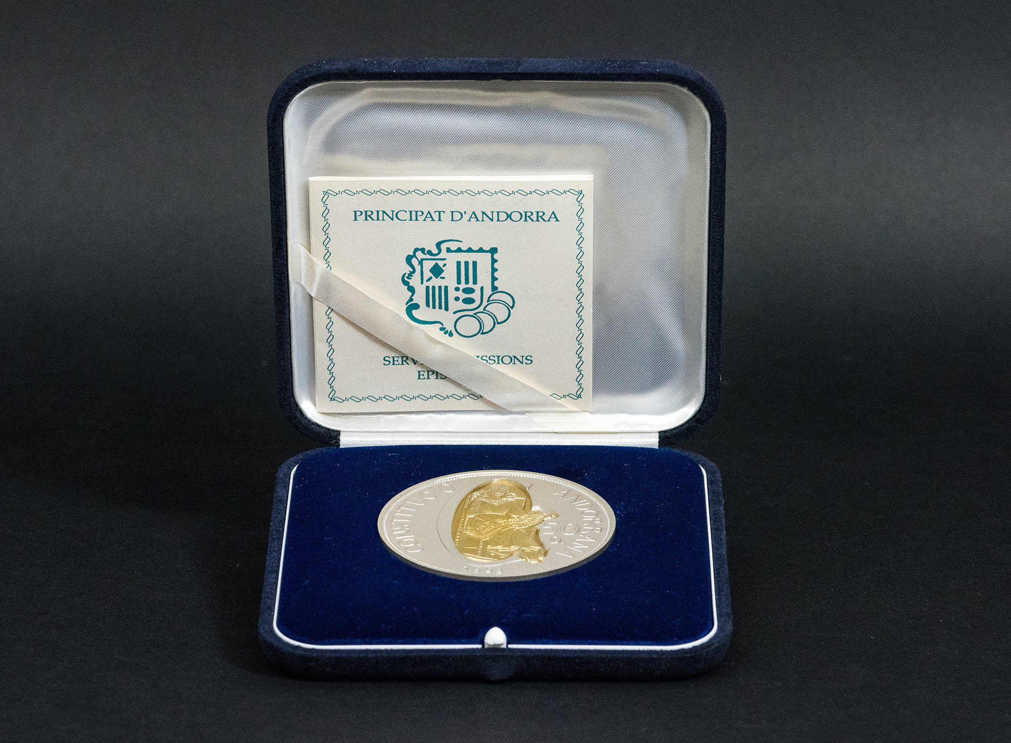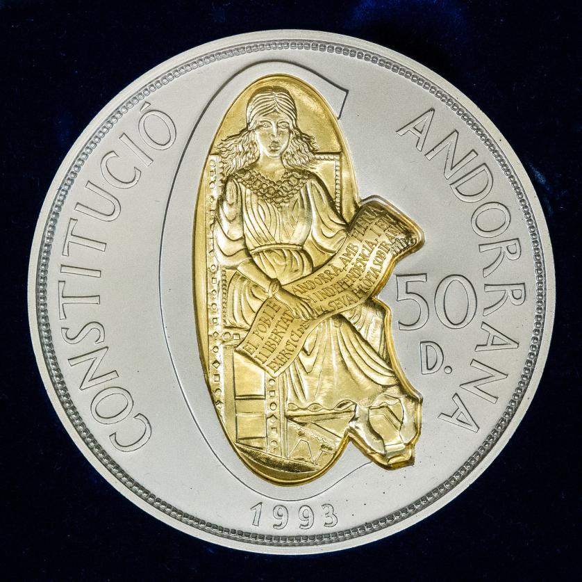 MONEDA EXTRANJERA. ANDORRA. 50 diners. 1993. AR 155,5 g. AU 3,6 g. KM-104. En su estuche y con certificado. SC. Emisión de 5000 piezas.