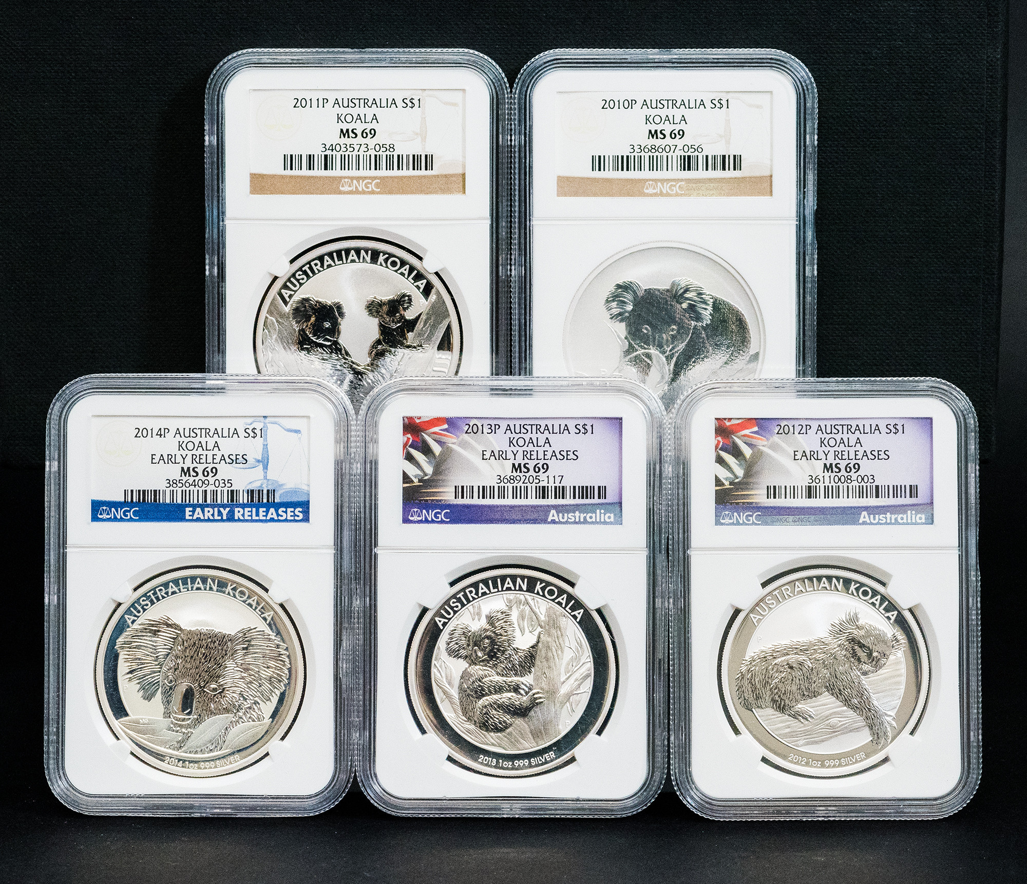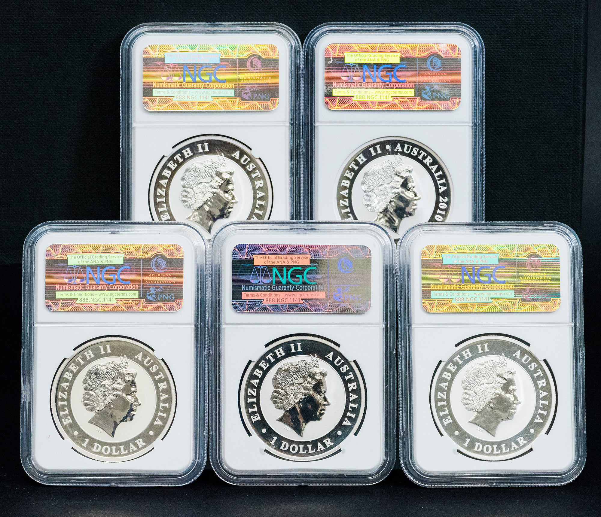 MONEDA EXTRANJERA. AUSTRALIA. Lote de 6 piezas de 1 dólar 2010 a 2014. Encapsuladas NGC MS 69.