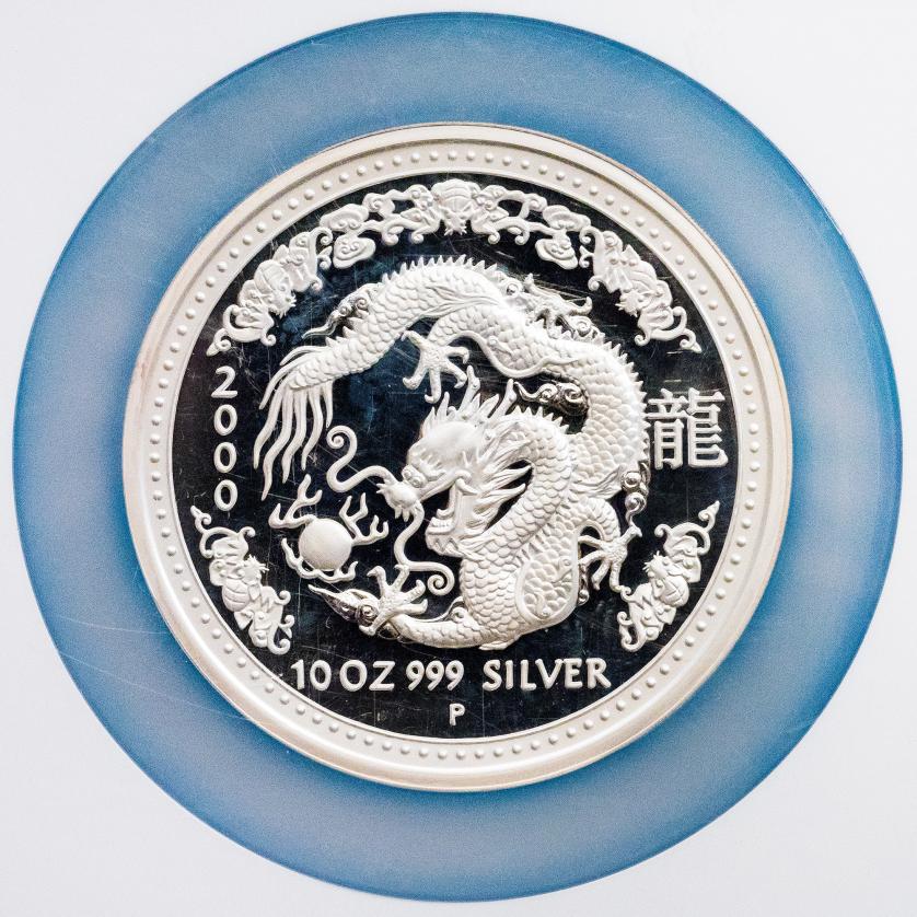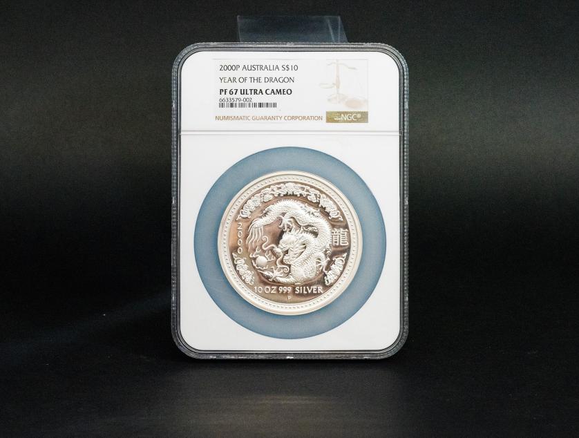 MONEDA EXTRANJERA. AUSTRALIA. 10 dólares. 2000 P. Año del Dragón. KM-524. Encapsuladas por NGC PF 67 Ultra cameo. Prueba.