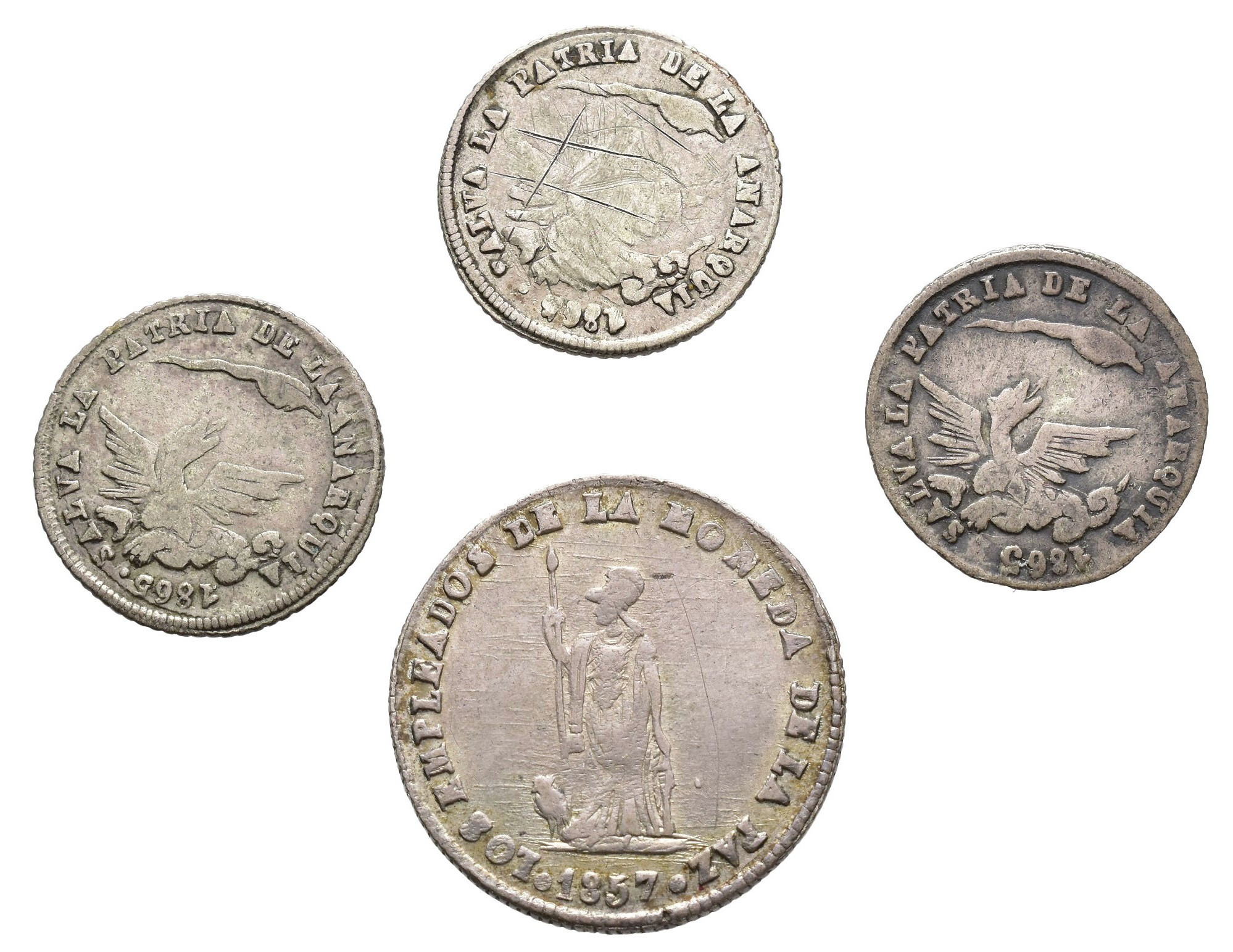 MONEDA EXTRANJERA. BOLIVIA. Lote de 4 monedas. BC+MBC-.