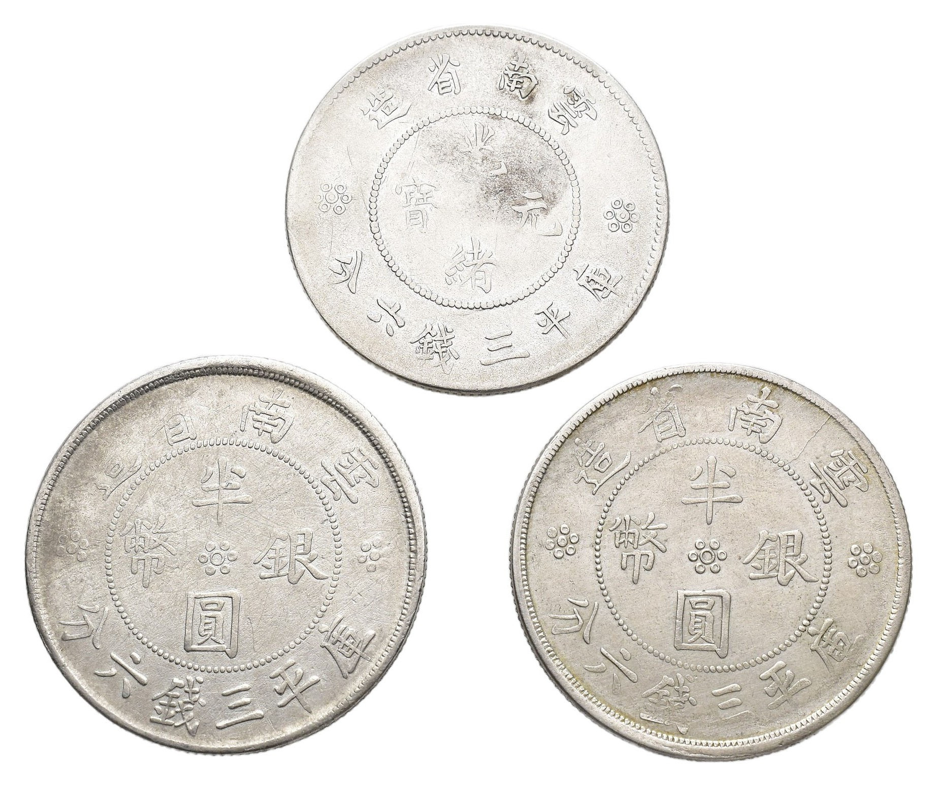MONEDA EXTRANJERA. CHINA. Provincia de Yunyan. Lote de 3 piezas: 50 cents KM 257 y KM 492. MBC-.