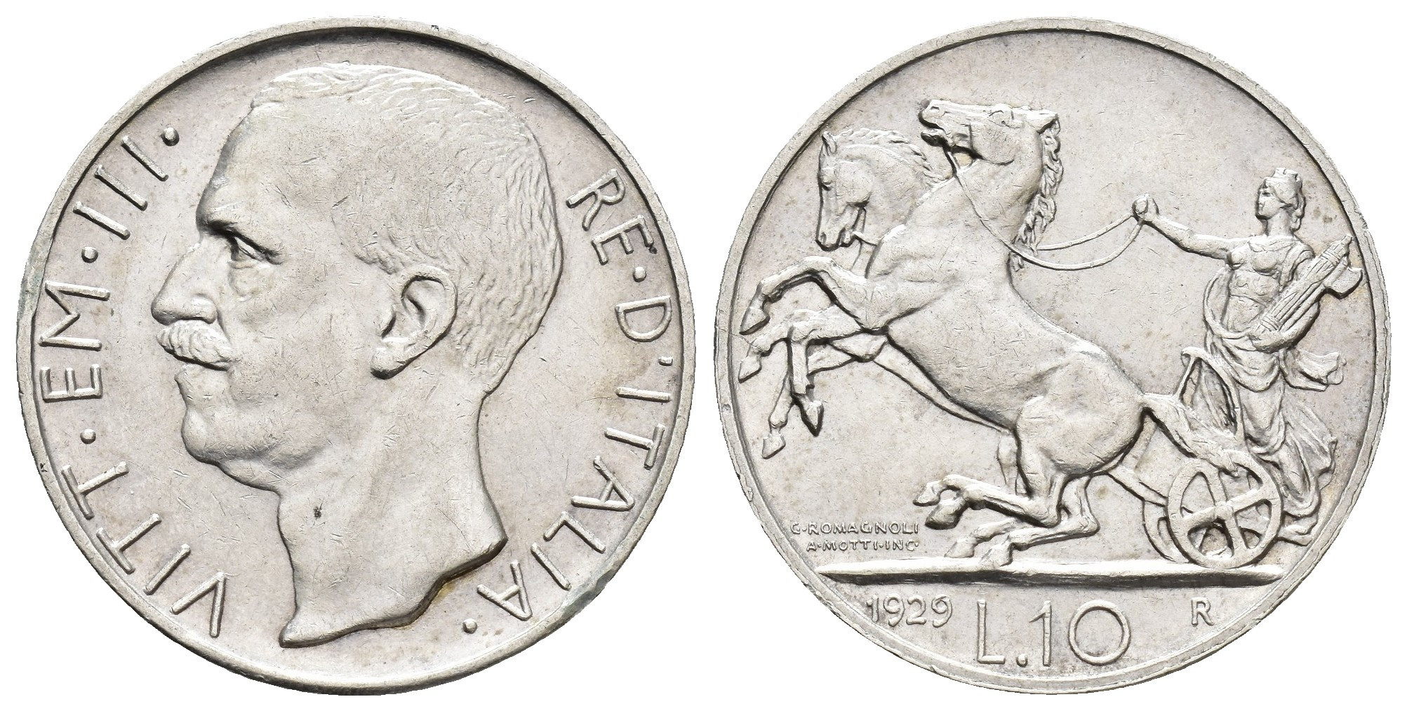MONEDA EXTRANJERA. ITALIA. Víctor Manuel III. 10 liras. 1929. R. AR 10,01 g. 26,9 mm. KM-68.1. Pequeño defecto en gráfila. Pequeñas marcas. EBC-.