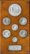 MONEDA EXTRANJERA. MÉXICO. Tesoros del Arte Precolombino 198. Cultura Olmeca y Teotihuacana. Casa de la Moneda de México. Conjunto con 14 piezas: 5 onzas (2: AR 155,5 g,); 1 onza (8: AR 31.1 g); 1/2 onza (2: 15,55 g) y 1/4 onza (2: AR 7,77 g). Total 21 onzas y media. En su caja y con certificado. SC.