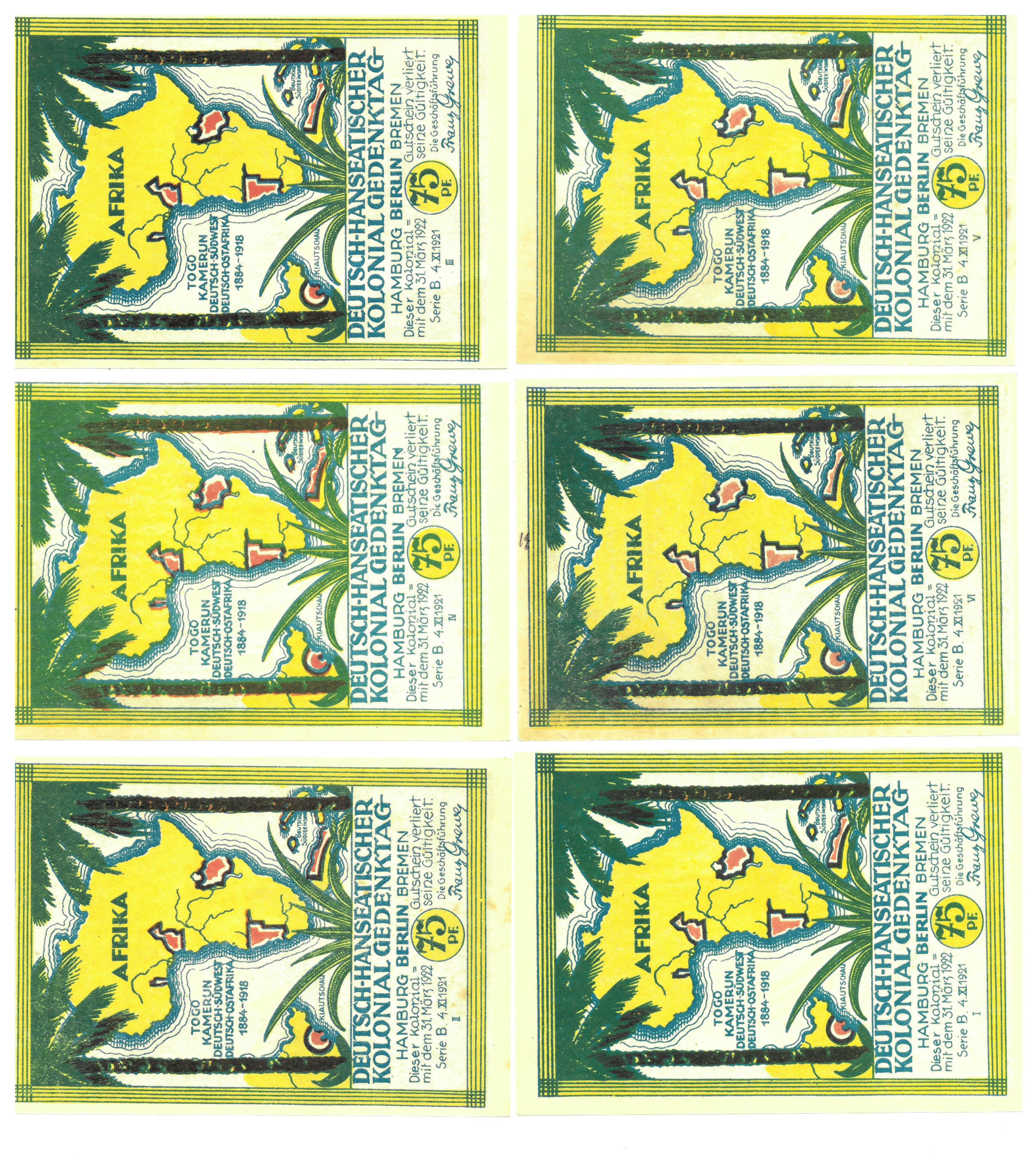 BILLETES EXTRANJEROS. ALEMANIA. Berlín. Lote de 6 billetes de 50 Pfennig de 1922. SC.