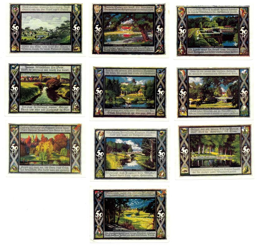 BILLETES EXTRANJEROS. ALEMANIA. Poppenbüttel. Lote de 10 billetes de 50 Pfennig, 1921. SC.