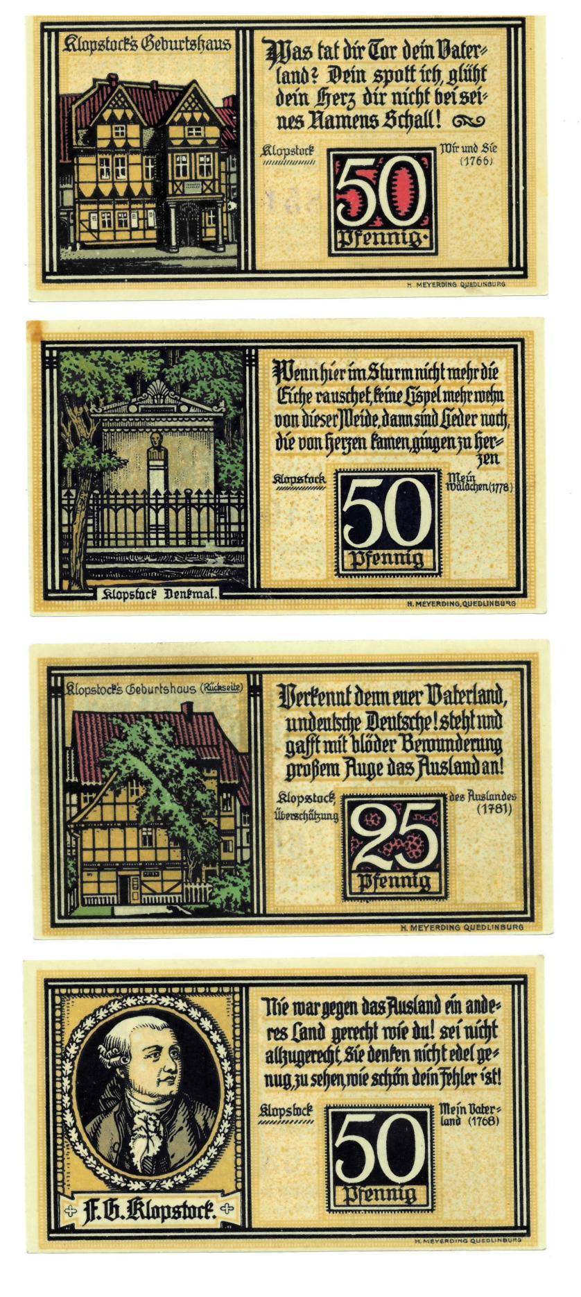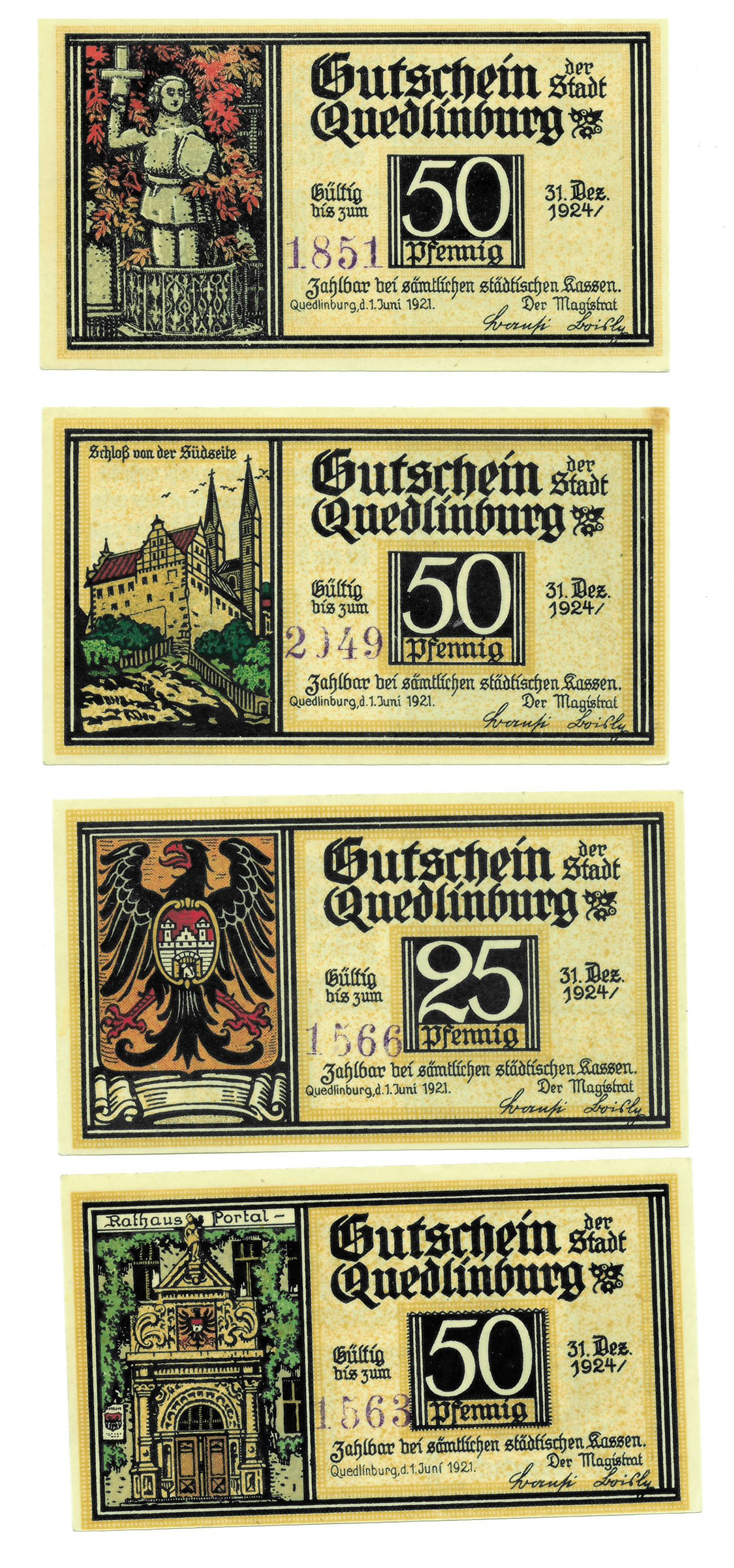 BILLETES EXTRANJEROS. ALEMANIA. Quedlinburg. Lote de 4 billetes 1924: 25 Pfennig y 50 Pfennig (3). SC.