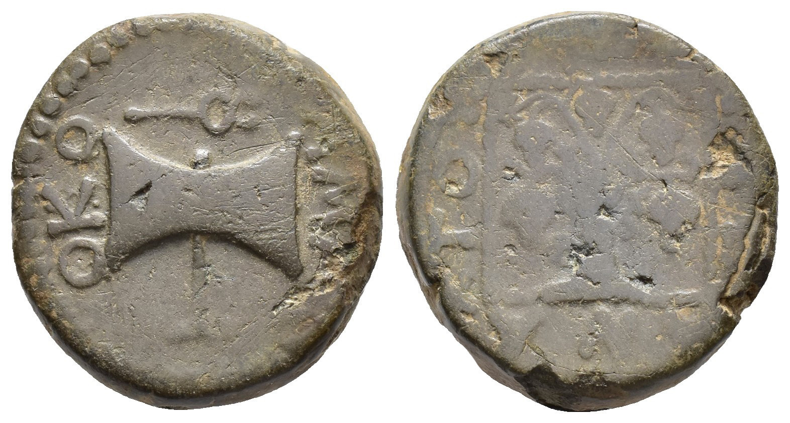 GRECIA ANTIGUA. TRACIA. Amatokos. AE (c. 389-380 a.C.). A/ Labryx, encima caduceo a der., AMA-T-OKO. R/ Viña dentro de cuadrado; (EPI KLE)ANAKTOC. AE 14,47 g. 21,7 mm. COP-no. MBC/BC+.