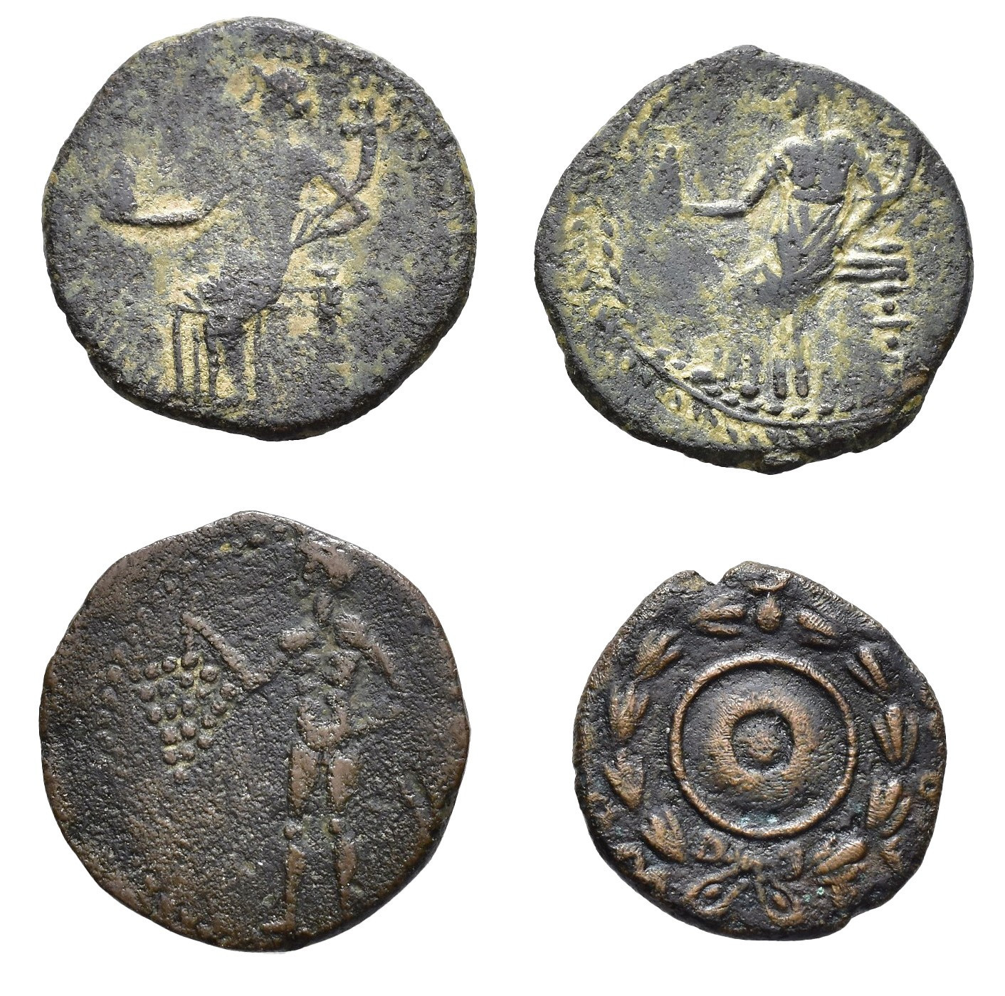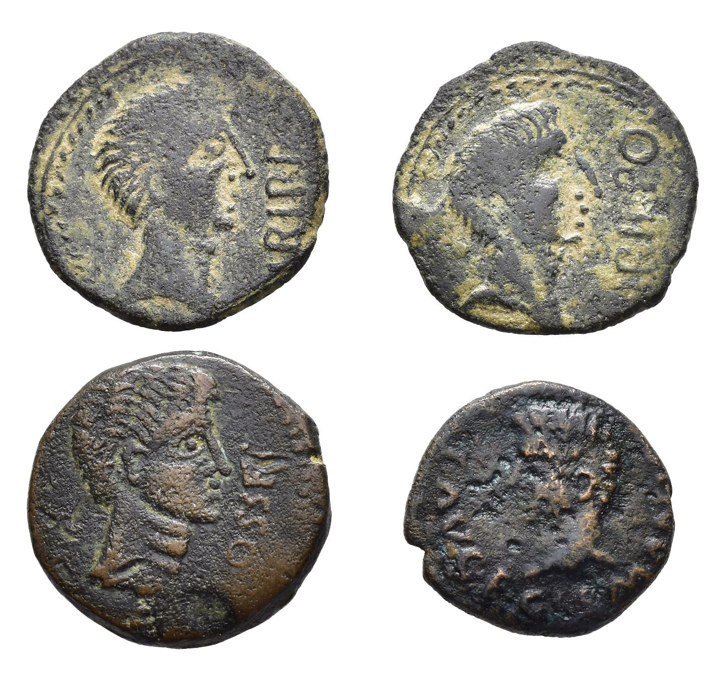 HISPANIA ANTIGUA. Lote de 4 piezas de la Bética: Irippo (2), Osset y Colonia Romula. CC-3997, 3999, 4030 y 4094, mismos ejemplares. BC/MBC-.