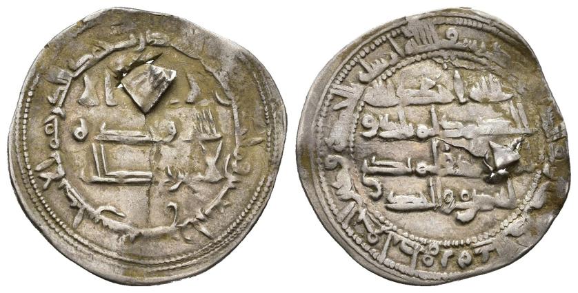 144   -  EMIRATO. MUHAMMAD I (852-886).Dírham. Al-Andalus. 249 H. AR 1,97 g. 24 mm. V-257. Fina grieta y leves oxidaciones. MBC.