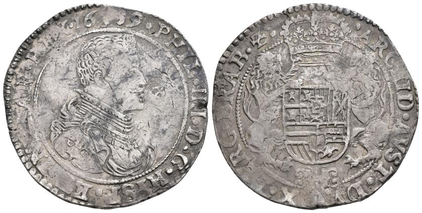 FELIPE IV. Ducatón. 1639. Amberes. AR 32,21 g. 42,18 mm. Vanhoudt-642AN. Leve plata agria. BC+/MBC-.
