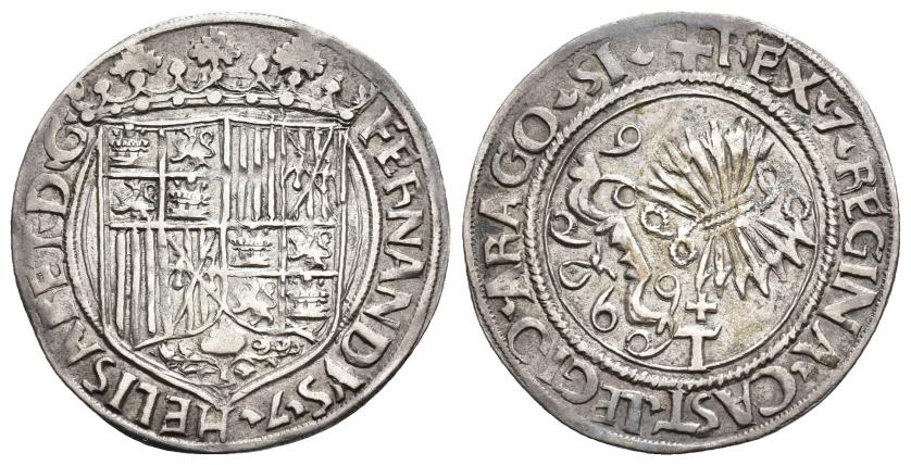 REYES CATÓLICOS. Real. Coruña. FERNANDVS: ET: hELISABET · D: G, roel a cada lado del escudo. +REX · ET · REGINA: CAST · LEGION: ARAGO: SICI.  AR 3,29 g. 27,35 mm. AC-330. MBC+. Rara.