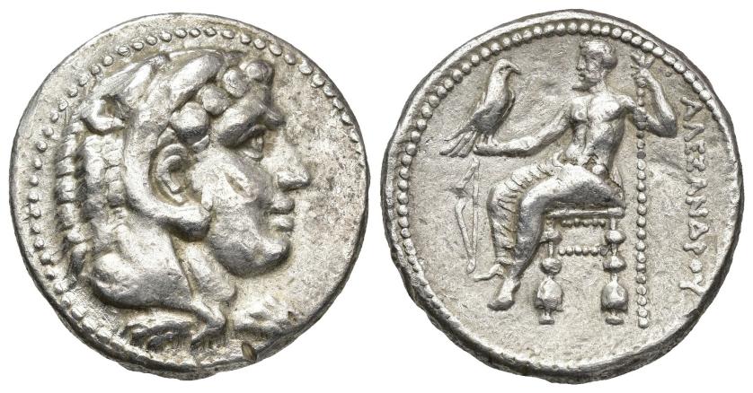 GRECIA ANTIGUA. MACEDONIA. ALEJANDRO III. Mileto (c. 300-295 a.C.). Tetradracma. Delante monograma, debajo bipennis. AR 16,97 g. 25,5 mm. PRC-2143. MBC+/MBC.