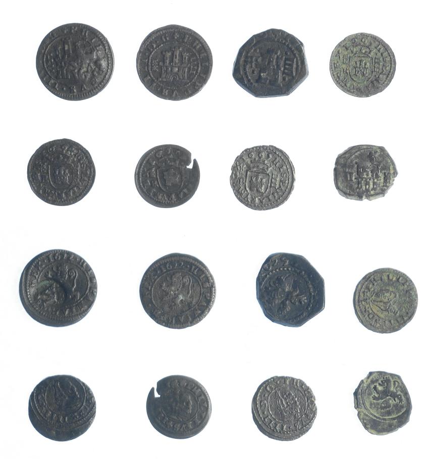 1010   -  FELIPE IV. Lote de 8 monedas de Segovia: 7 de 4 maravedís 1622 (2, una de ellas con resello), 1625, 1663 (3) y 1664 y 1 de 2 maravedís con marca flor. BC+/MBC.