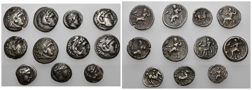 173   -  GRECIA ANTIGUA. Lote de 4 divisores y 7 dracmas de Filipo II, Alejandro III y Filipo III. Total 11 piezas. Calidad media MBC-.