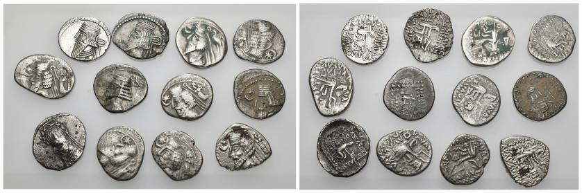 GRECIA ANTIGUA. Lote de 12 dracmas de Partia. De BC+ a MBC+.