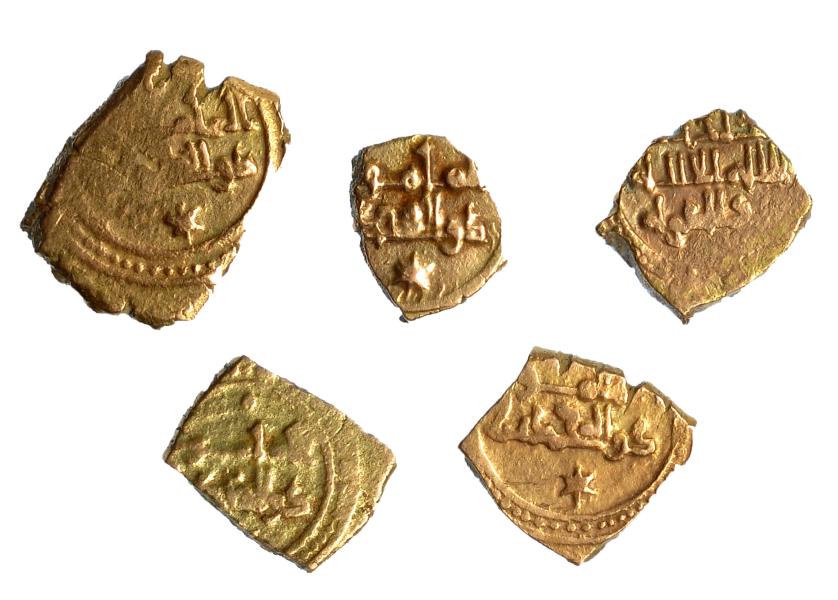 Lote 5 fracciones de dinar de la taifa de Valencia. S. XII. Prieto-342. MBC/MBC-.