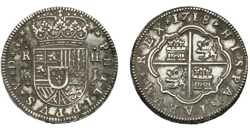 FELIPE V. 2 reales. 1718- Segovia. J. VI-761. MBC+.