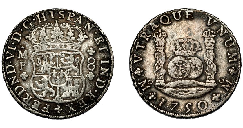 FERNANDO VI. 8 reales. 1750. México. MF. VI-358. Rayas de ajuste. MBC.
