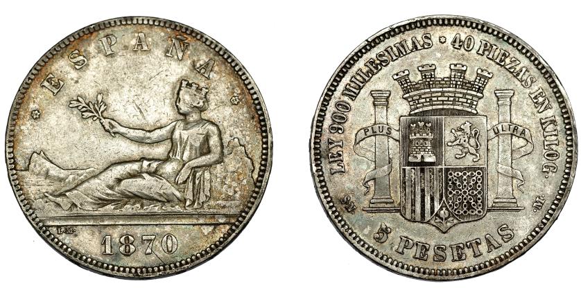 GOBIERNO PROVISIONAL. 5 ptas. 1870 *18-70. Madrid. SNM. VII-22. Rayitas. MBC.