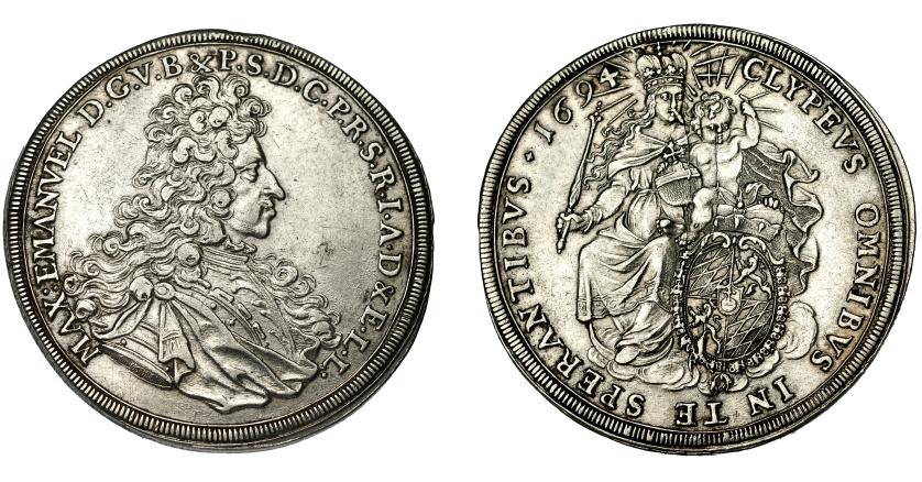 ESTADOS ALEMANES. MAXIMILIANO II MANUEL DE BAVIERA. 1694. Tálero. AR 29,20 g. 43,1 mm. KM-363. MBC+.