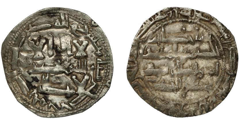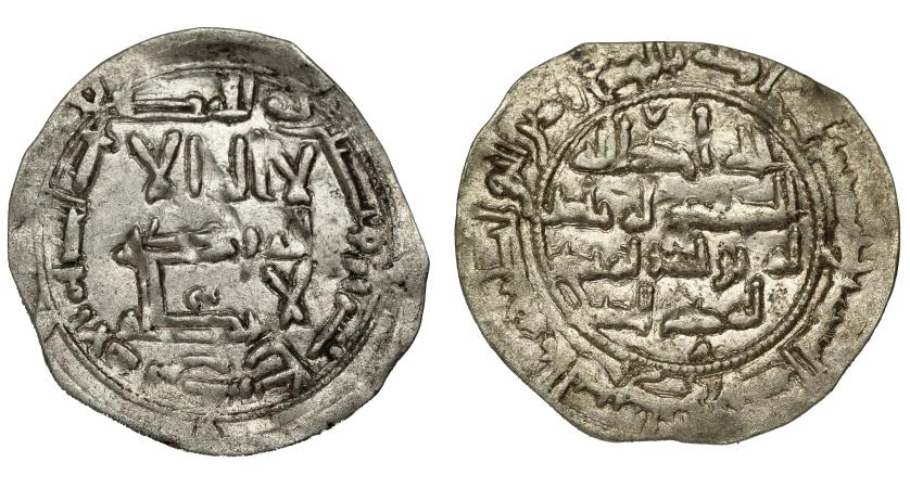 317   -  EMIRATO INDEPENDIENTE. Abd al-Rahman II. Dirham. Al-Andalus. 218 H. AR 2,69 g. 27 mm. V-1151. Ligeramente alabeada. MBC.