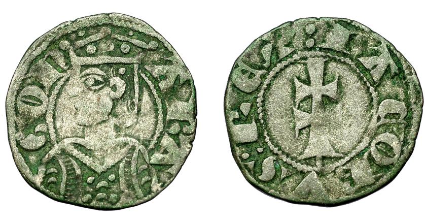 493   -  CORONA DE ARAGÓN. PEDRO EL CATÓLICO (1196-1213). Dinero. Aragón. VE 0,97 g. 18,2 mm. IV-302. MBC-.