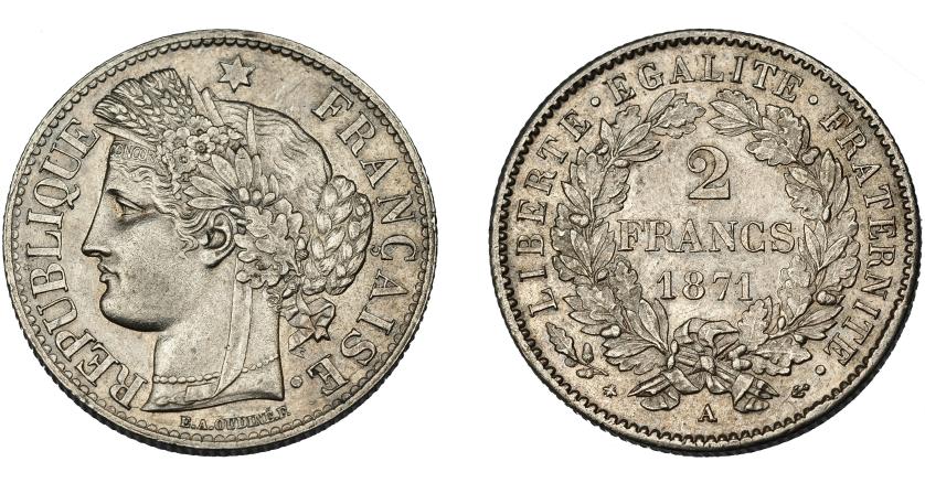 MONEDAS EXTRANJERAS. FRANCIA. 2 francos. 1871 A. KM-822.1. EBC-.