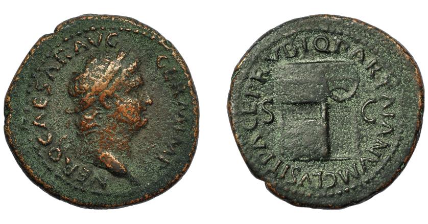 294   -  IMPERIO ROMANO. NERÓN. As. Roma (65 d.C.) R/ Templo de Jano con la puerta cerrada; PECE PR VBIQUE PARTA IANVM CLUSIT, SC. AE 10,94 g. 28,5 mm. RIC-309. BC+/MBC.