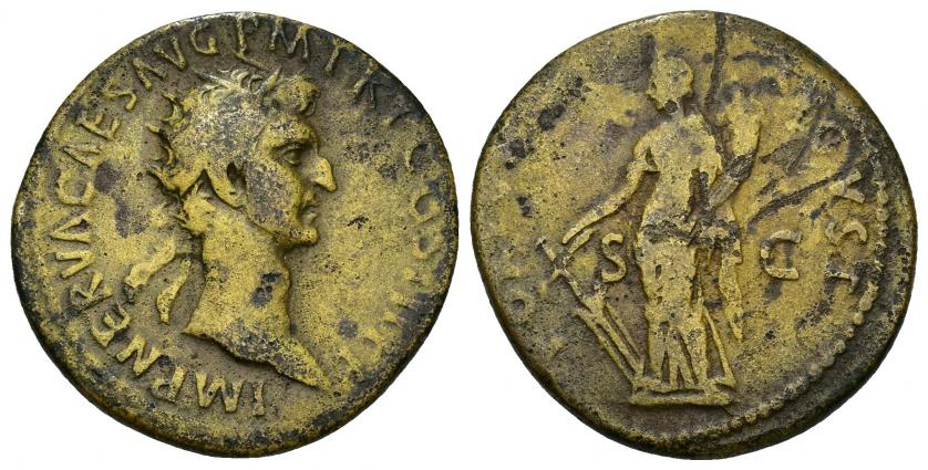 3181   -  IMPERIO ROMANO. NERVA. Dupondio. Roma (97 d.C.). A/ Cabeza radiada a der.; IMP NERVA CAES AVG P M TR P COS III P P. R/ Fortuna a izq. con timón y cornucopia; (F).OR(TVNA). AVGVST, S-C. AE 13,45 g. 27,9 mm. RIC-84. Porosidades. Rayas en rev. BC+/BC.