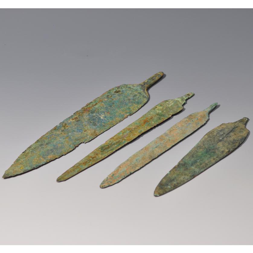 ARQUEOLOGÍA. PRÓXIMO ORIENTE. Luristán. Lote de 4 puntas de flecha (ss. XI-VI a.C.). Bronce. Longitud de 13 a 20 cm.