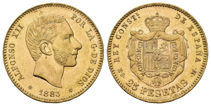 ALFONSO XII. 25 pesetas. 1883*18-83. Madrid. MSM. AU 8,07 g. 23,8 mm. VII-112; AC-87. SC.