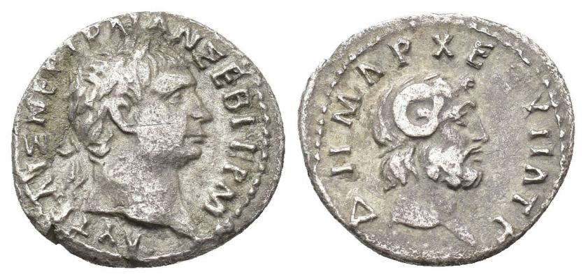IMPERIO ROMANO. TRAJANO. Hemidracma. Cyrenaica (100 d.C.). A/ Cabeza laureada a der.; AUT KAIS NER TRAIAN SEB GERM. R/ Cabeza de Zeus-Amón a der.; DHMARH EX UPATOx. AR 1,58 g. 15,71 mm. RPC-III.3. MBC-.