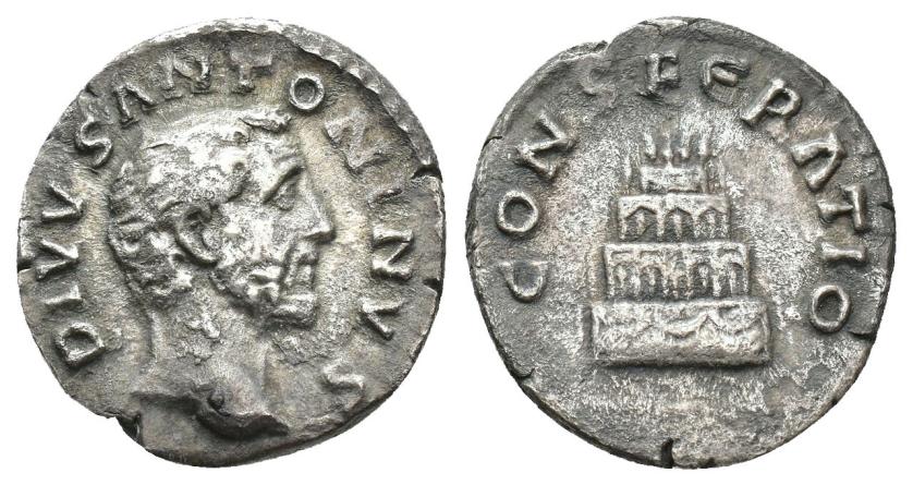 IMPERIO ROMANO. ANTONINO PÍO. Roma (140-143). A/ Cabeza laureada a der.; ANTONINVS AVG PIVS P P TR P COS III. R/ Modio; ANNONA AVG. Ar 3,75 g. 17,3 mm. RIC-62A. MBC.