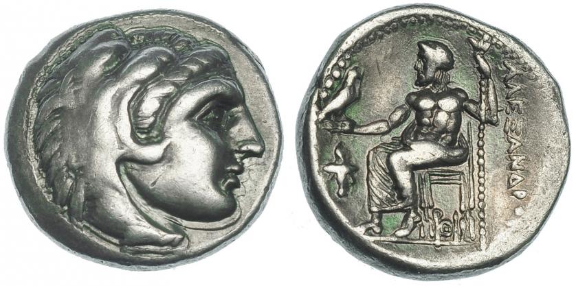 105   -  MACEDONIA. ALEJANDRO III. Colofón. Dracma (c. 319-310 a.C.). R/ Debajo del trono monograma, delante SC. AR 4,15 g. PRC-1794. Leves oxidaciones. MBC-/MBC.