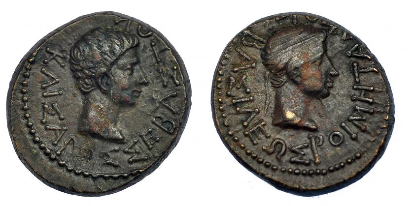 TRACIA. RHOEMETALKES I. AE 20 (11 a.C-12 d.C.). A/ Cabeza diademada del rey a der. R/ Cabeza de Augusto a der. COP-1192. RPC-1718. SGI-5395. Vano. MBC+.