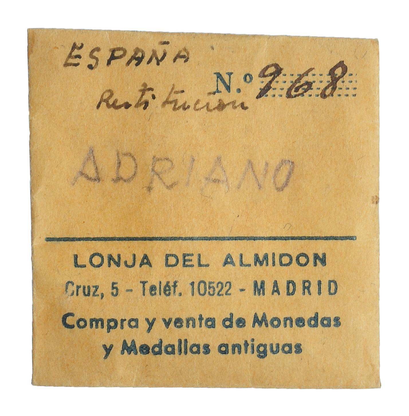 ADRIANO. Sestercio. Roma (134-138). R/ Adriano estrechando la mano a Hispania arrodillada ante él; RESTITVTOR HISPANIAE, exergo SC. AE 24,18 g. 31 mm. RIC-952. Superficies erosionadas. MBC-. Venta privada en La Lonja del Almidón. Conserva sobre original.