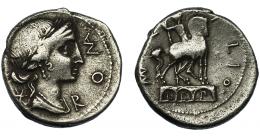 AEMILIA. Denario. Roma (114-113 a.C.). R/ Estatua ecuestre sobre arquería. AR 3,44 g. 18,5 mm. CRAW-291.1. FFC-103. MBC-.