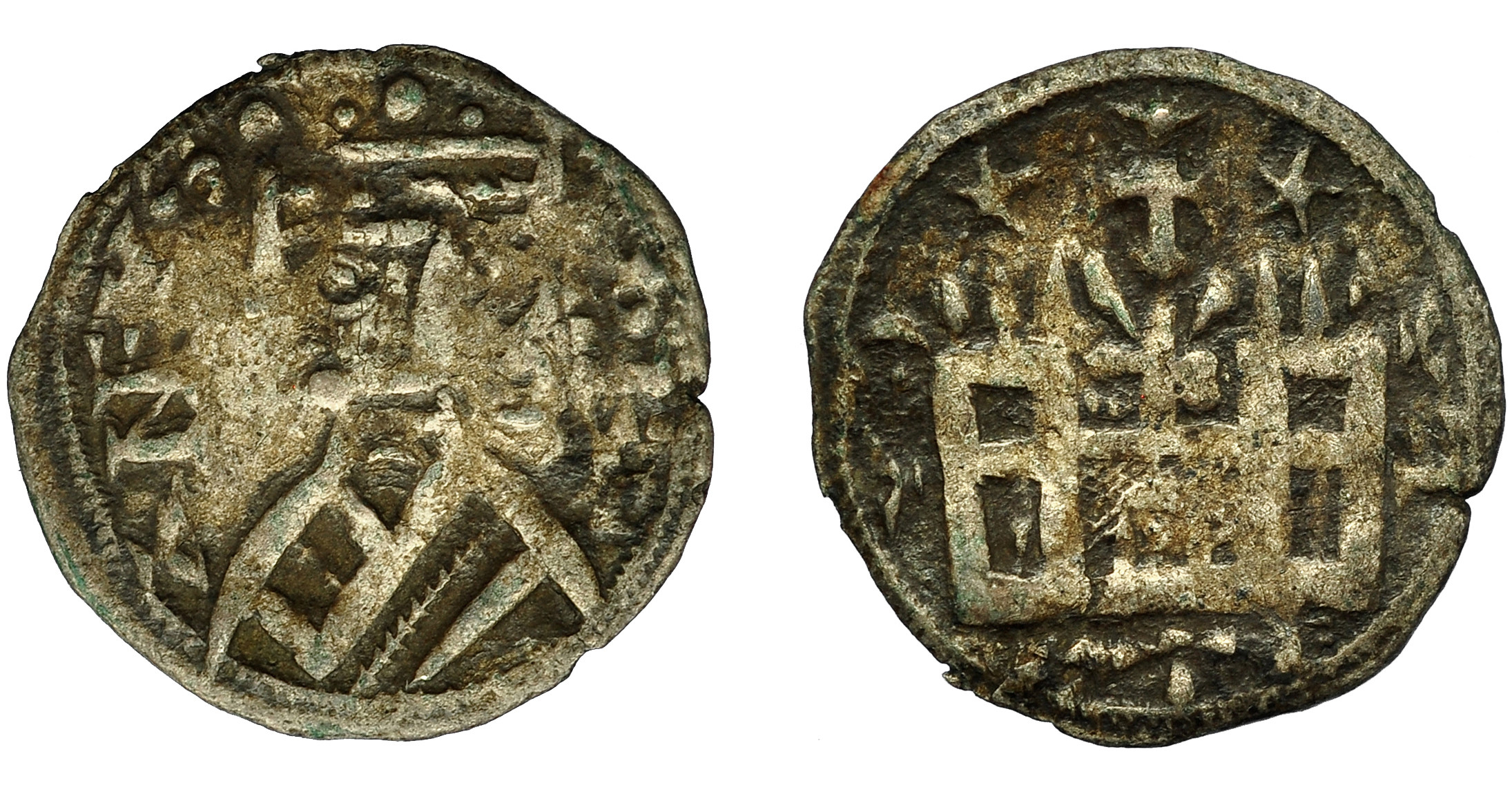 REINOS DE CASTILLA Y LEÓN. ALFONSO VIII. Dinero. Marcas *-*. VE 0,82 g. 17,2 mm. III-205. BMM-312. MBC-.