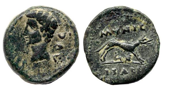ITALICA. Semis. Augusto. A/ Cabeza a izq.; PERM CAES AVG. R/ Loba con los gemelos; MVNIC/ITALIC. AE 8,54 g. RPC-62. APRH-62a. ACIP-3330. CC-4048, mismo ejemplar. Pátina verde oscuro. BC/MBC. Rara.